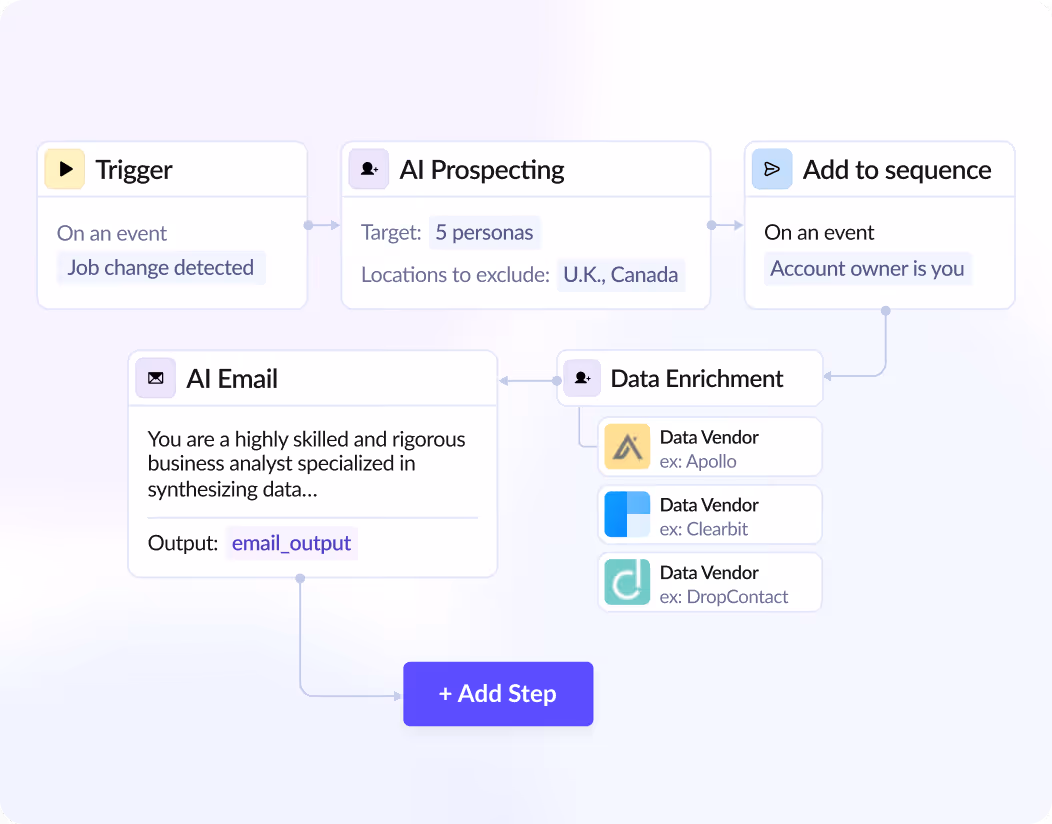 Surface targeted prospects, enrich accounts, launch sequences, and draft personalized emails — automatically.