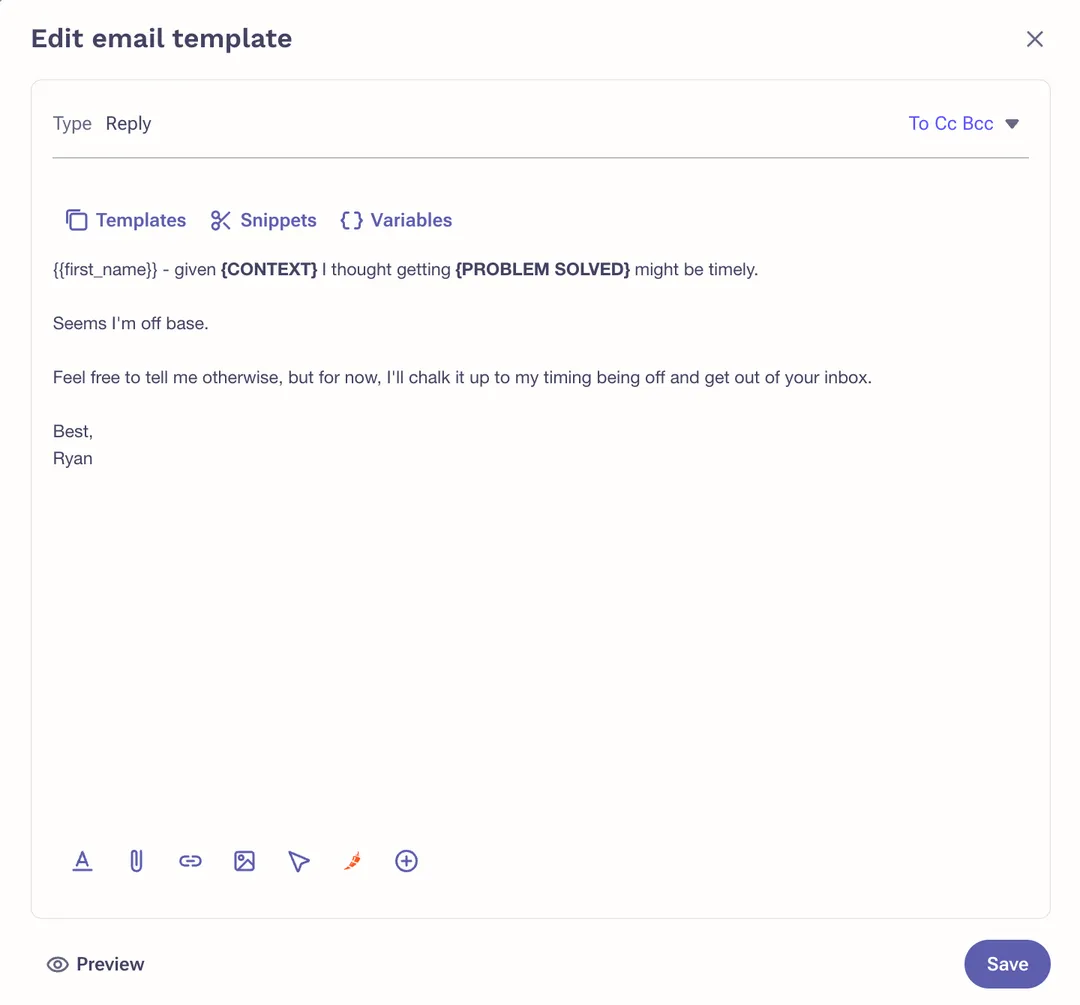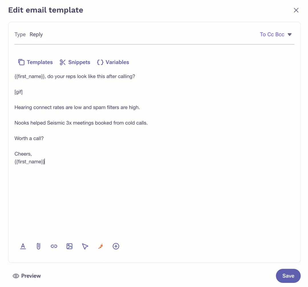 Customize with intent signals or new context that is time bound. Add what you learned from your multi-threaded conversations. Use social proof. Apply the relevant context to a personalized subject line.