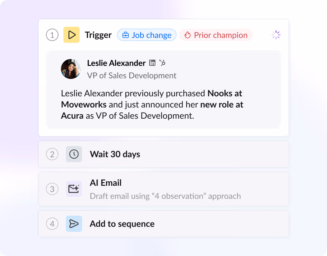 Automate signal to action in minutes. Choose from a set of pre-built playbooks or build your own custom automation to save rep time and scale what works.