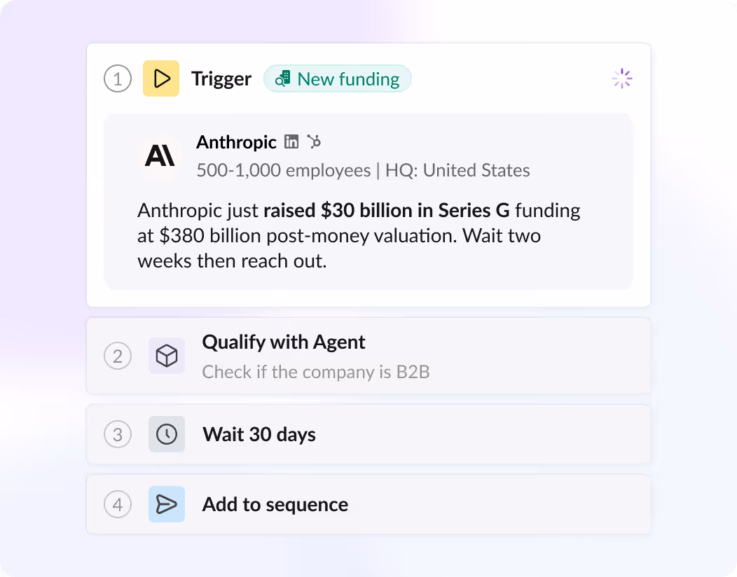 Prioritize the hottest prospects. Instantly generate lists from custom signals and account context to get the right message to the right person at the right time.